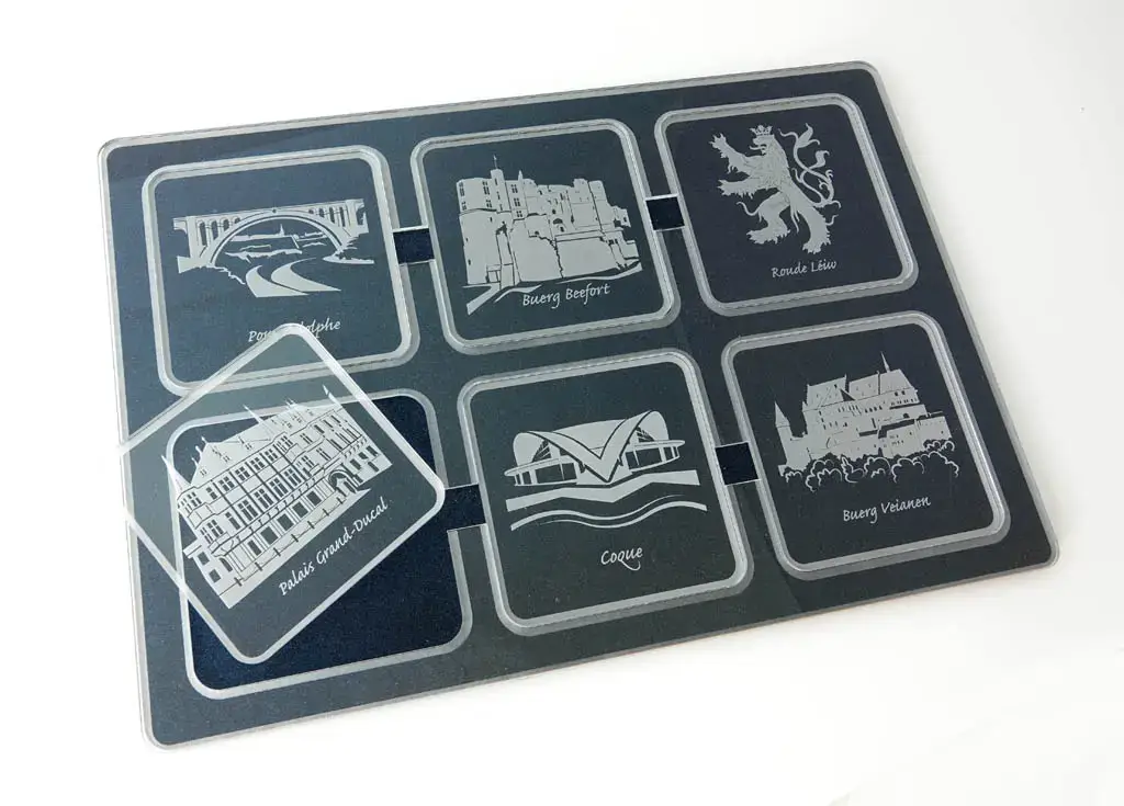 Notre équipe assure, depuis la conception jusqu‘à la production en série, des produits spécifiques et uniques qui répondent au mieux aux souhaits de chaque client (gadgets divers, cadeaux d‘entreprises, boîtes publicitaires, marquage d‘objets, gravure de médailles et trophées, découpe de maquettes, plaque signalétique, porte-clés, plaque évènementielle, gravure de portraits, …).
